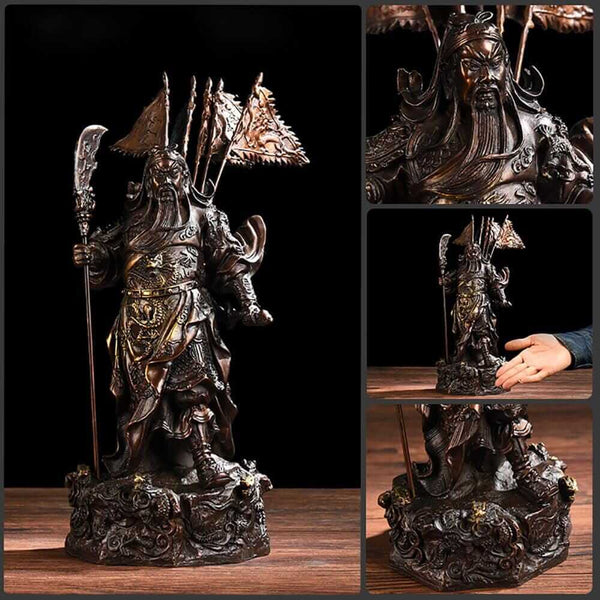 Selon la tradition Feng Shui, la représentation du guerrier Guan Yu est utilisé pour apporter la paix, l’harmonie, la sécurité, mais aussi la richesse et la prospérité. Tous les attributs et les qualités de ce personnage historique font de lui un protecteur de la maison et de l’entreprise, qui apporte protection aux opprimés et aux démunis, et éloigne les esprits malveillants et les énergies négatives.